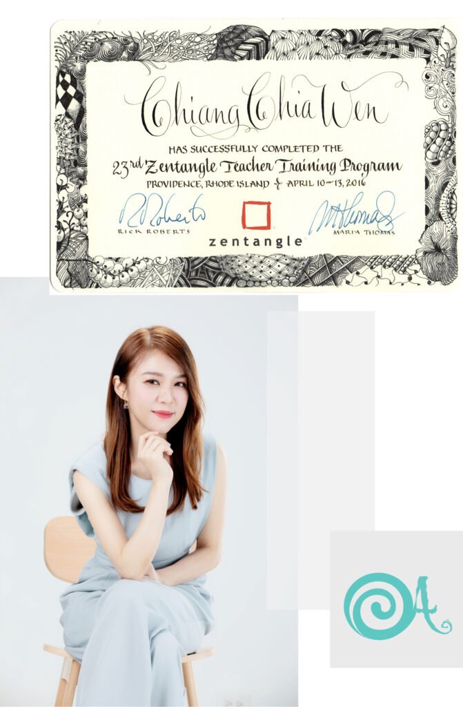 為了讓更多人能體驗這份創作帶來的療癒力量,我遠赴美國取得官方禪繞教師認證(CZT),並創立【愛文創藝工作室】,開展結合禪繞、曼陀羅與寶石主題的創作課程。