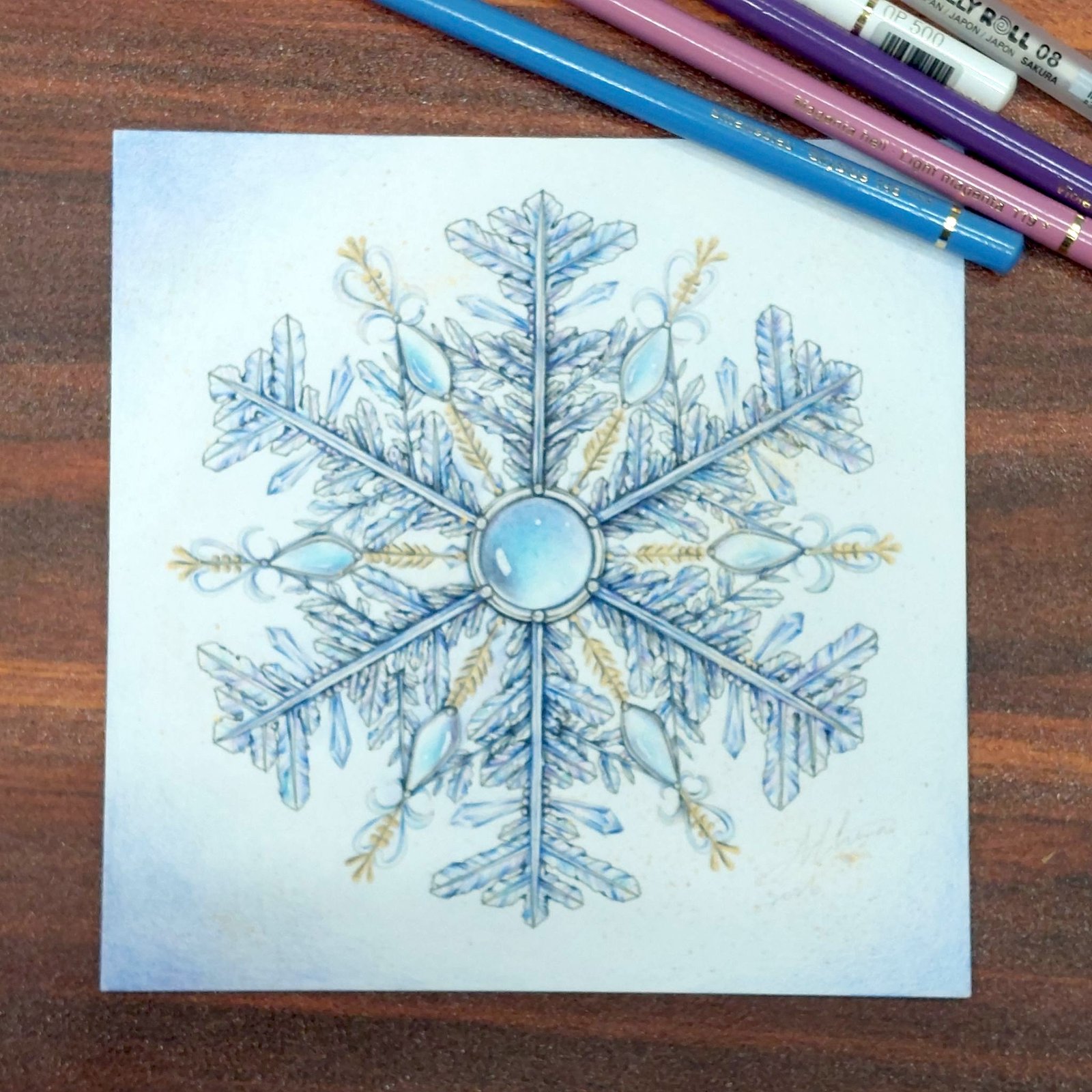 冰的結晶具有高度多樣且有秩序的形態,作為畫面基礎架構,使作品在細緻之中維持穩定與清晰。