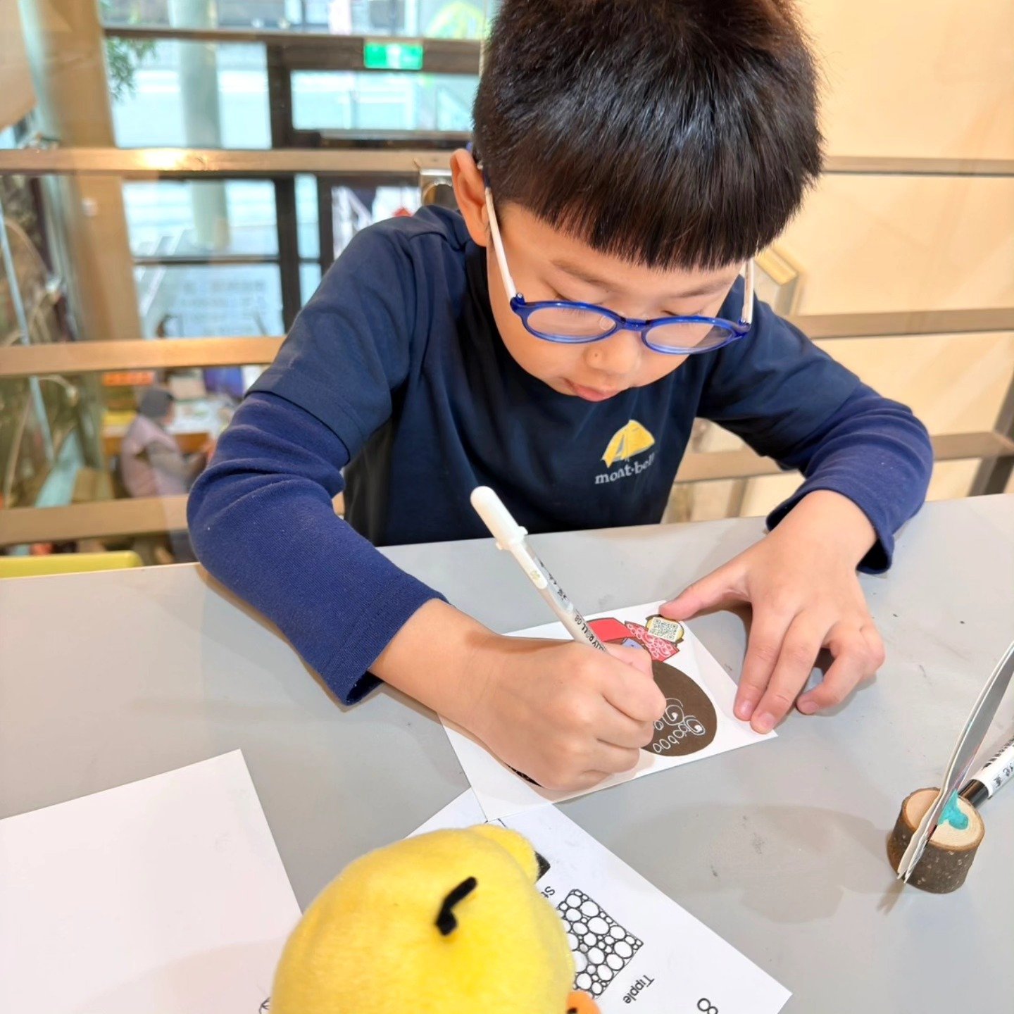 有人很專心地畫圖樣,