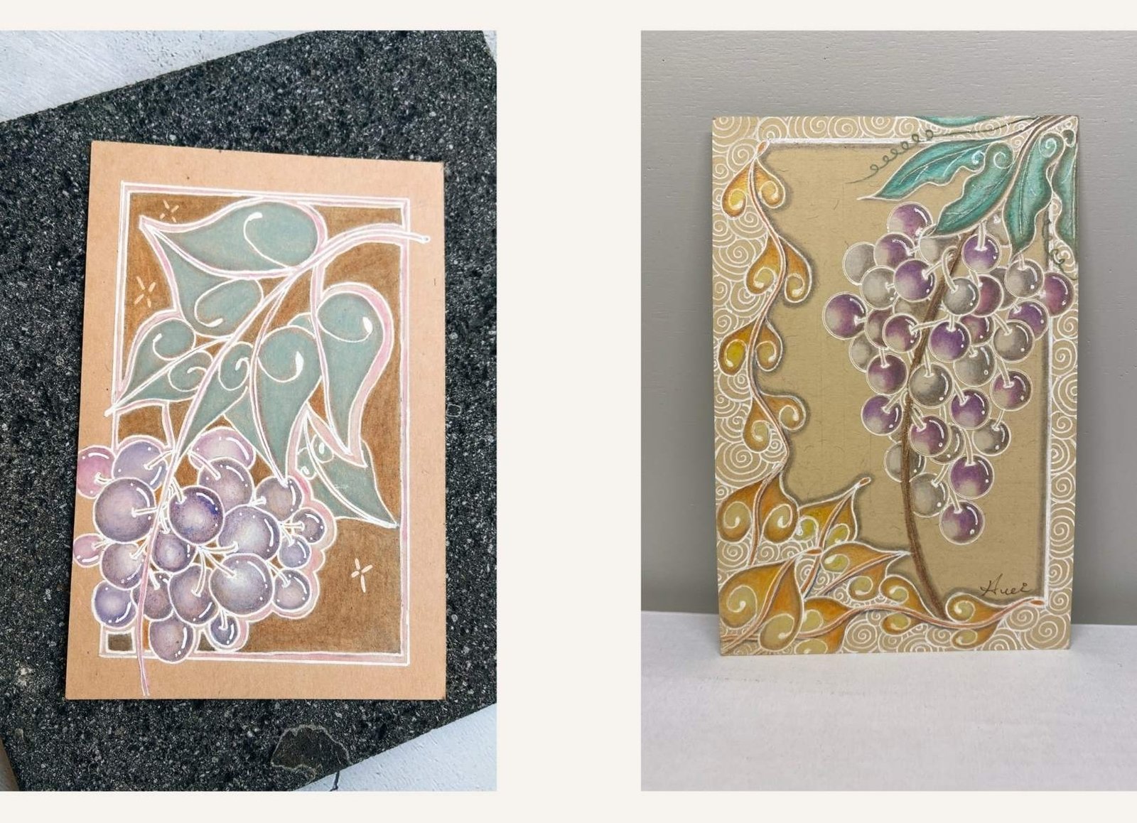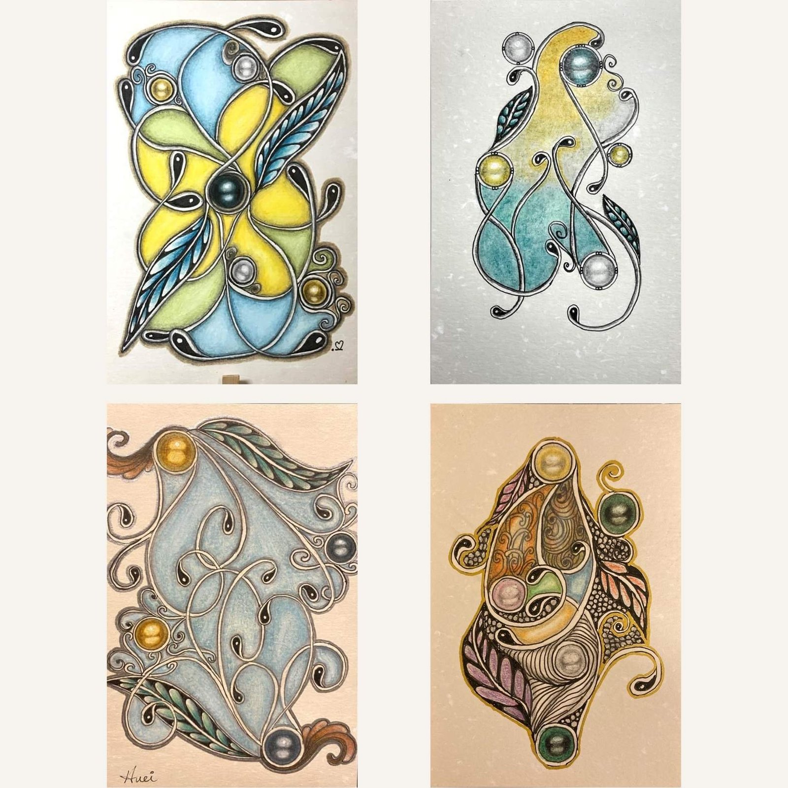 此系列作品亦整合過往以新藝術與慕夏風格為靈感所創作的禪繞寶石作品,呈現一條持續發展的創作脈絡。從線條的曲折變化、圖樣的層次配置,