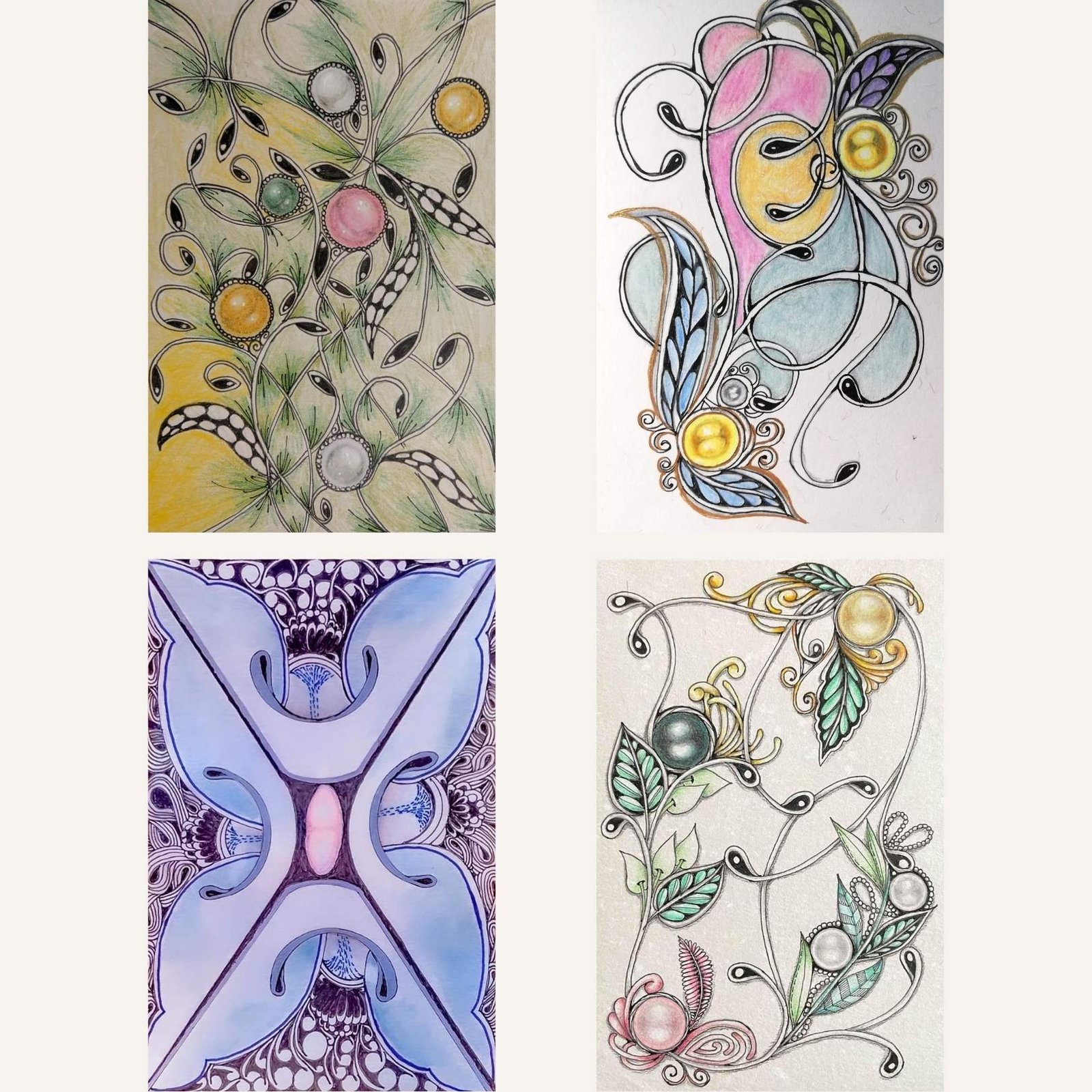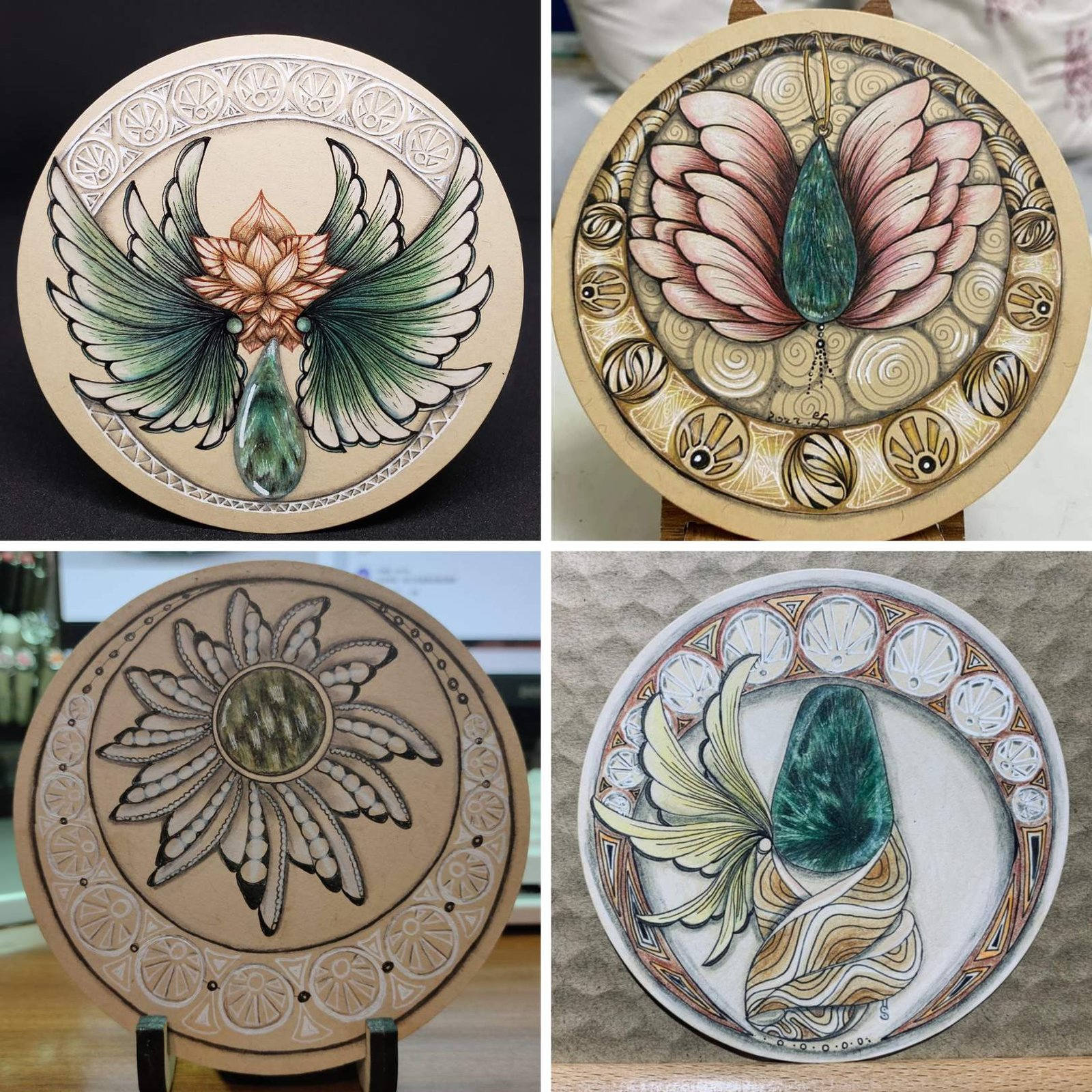 到寶石與背景之間的呼應關係,逐步累積出屬於本系列的視覺語言,並作為後續禪繞寶石藝術教學與創作延伸的重要基礎。