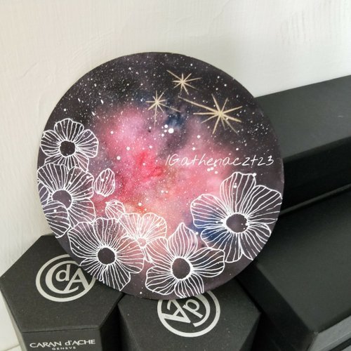 墨水渲染星空杯墊【禪繞畫/墨水/渲染】