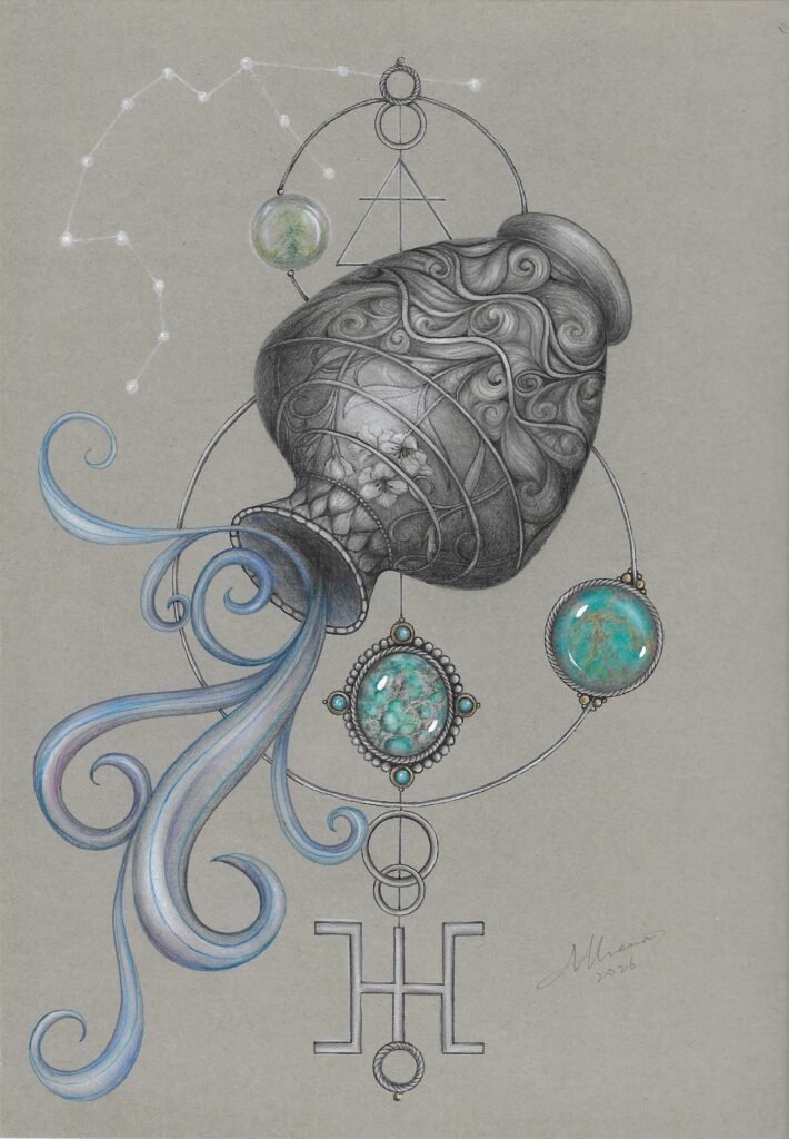 作品名稱|水瓶座禪繞寶石・星序之流